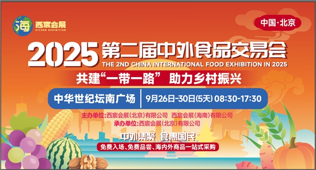 共建“一带一路”,助力乡村振兴。2025第二届中外食品交易会将于2025年9月26日至30日在北京中华世纪坛南广场举办。本届交易会以“中外集聚,食惠国民”为主题,为国内外企业搭建展示、交流平台。